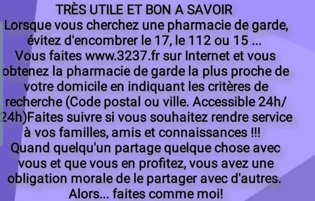 - Pharmacie de garde... a savoir.